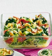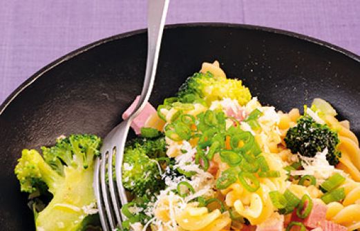 Brokkoli-Schinken-Pastasotto Zutaten 1 Zwiebel 2 Knoblauchzehen 300 g Brokkoli 2 Frühlingszwiebeln 150 g gekochter Schinken am Stück 50 g Parmesan am Stück 650 ml Gemüsebrühe (Instant) 40 g Butter 200 g Nudeln (Fusilli, Casarecce oder Gemelli) 100 ml trockener Weißwein (z. [...]