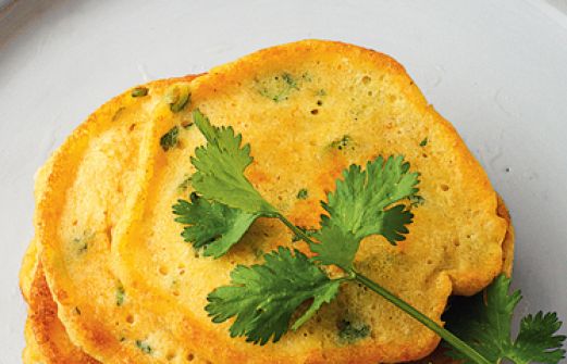 Kichererbsen-Koriander-Pancakes Zutaten 1 Dose Kichererbsen (Abtropfgewicht 240 g) 50 ml Milch 150 g saure Sahne 2 Eier Salz 80 g Mehl ½ TL Backpulver 1 TL gemahlener Kreuzkümmel ½ TL Chilipulver ½ Bund Koriandergrün (ersatzweise Petersilie) Fett zum Braten guk:similari [...]
