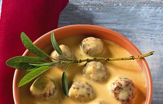 Salbei-Käse-Sauce Zutaten 1 Knoblauchzehe 2 grobe Bratwürste (z. B. fränkische Rostbratwürste oder Thüringer) 40 g Butter 1 EL getrockneter Salbei 2 TL Mehl 50 ml trockener Weißwein 1/4 l Brühe (Instant) 100 g Sahne 100 g Schmelzkäse 2 TL Aceto balsamico Salz Pfeffer [...]