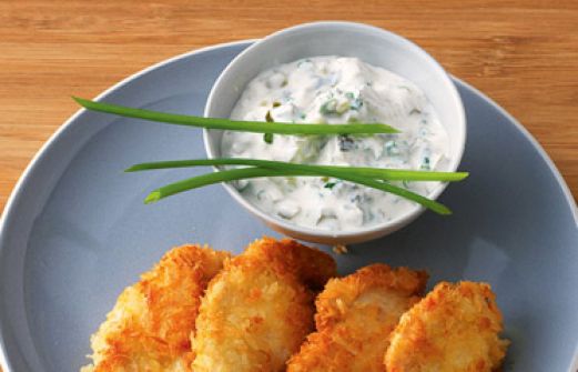 Hähnchenschnitzel mit Zitronen-Kapern-Creme Zutaten 2 Essiggurken 1 Bund Schnittlauch 2 EL Kapern ½ Bio-Zitrone 200 g saure Sahne Salz Pfeffer 600 g Hähnchenbrustfilets 2 EL Mehl 2 Eier (Größe M) 1 TL Wasabipaste (grüner japanischer Meerrettich) 100 g Semmelbrösel 3 EL [...]