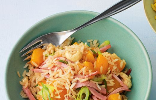 Kreolen-Reis Zutaten 2 TL Olivenöl 75 g Vollkornreis 250 ml Fleischbrühe (Instant) 1 Prise geschroteter Pfeffer 200 g feste Aprikosen 2 Frühlingszwiebeln 50 g gekochter Schinken Sojasauce Zimtpulver 2 EL Cashew-Kerne Öl für das Backblech guk:similarity-keywords=""> [...]