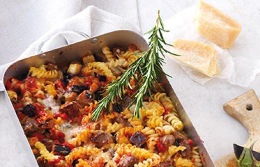 Spiralnudelgratin mit Lamm Zutaten 250 g Spiralnudeln Salz 3 EL Olivenöl 3 Frühlingszwiebeln 2 Auberginen 500 g Lammfilet Pfeffer 1 TL getrockneter Rosmarin 400 g stückige Tomaten (Dose) 1 Bund Basilikum 200 g Parmesan Butter für die Form guk:similarity-keywords="" [...]