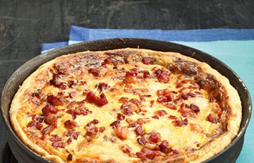 Quiche Lorraine Zutaten 250 g Weizenmehl + Mehl für die Arbeitsfläche Salz Zucker 125 g Butter 100 g durchwachsener Speck 1 EL Olivenöl 80 g französischer Hartkäse (z. B. Comté) 250 g Sahne 250 ml Milch 2 Eier (Größe M) 2 Eigelbe (von Eiern Größe M) Salz Pfeffer Ca [...]