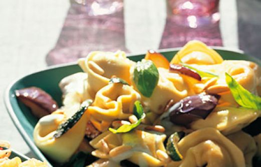 Tortellinisalat Zutaten 300 g Tortellini (mit Fleisch- oder Käsefüllung; Kühlregal) Salz 5 kleine Zucchini 1 Aubergine 8 EL Olivenöl 2 Knoblauchzehen schwarzer Pfeffer 40 g Pinienkerne 1 Bund Basilikum 200 g Gorgonzola 200 ml Milch guk:similarity-keywords=""> 300 [...]