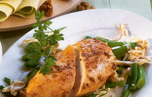 Hähnchenfilet auf Champignons Zutaten 150 g grüne Bohnen Jodsalz 200 g Hähnchenbrustfilet Pfeffer 1 EL Rapsöl 150 ml Geflügelbrühe 50 g Frischkäse (5 % Fett) 200 g Champignons 1/2 Bund Petersilie Alufolie guk:similarity-keywords=""> 150 g grüne Bohnen , Jodsal [...]