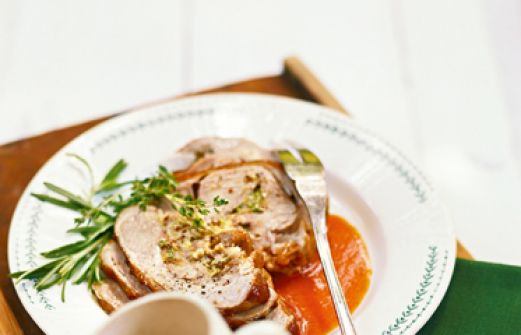 Lammkeule mit Kräuterfüllung Zutaten 1 Lammkeule (ca. 1,5 kg, ohne Knochen) Salz Pfeffer 2 Scheiben Toast- oder Weißbrot 2 Knoblauchzehen 1 EL gehackter Thymian 1 EL gehackter Rosmarin 2 EL gehackte Petersilie 1 EL Dijon-Senf 4 EL weiche Butter ½ Stange Lauch 1 dicke M [...]