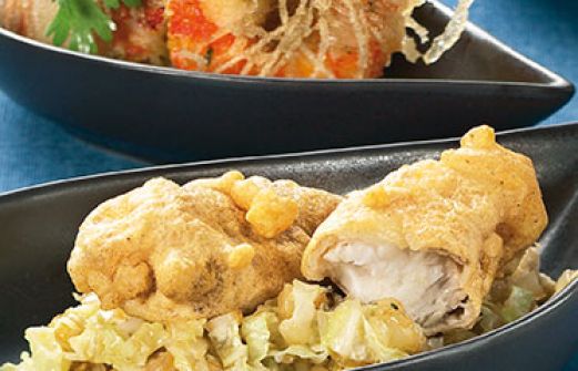 Fischstäbchen mit Chinakohl Zutaten 600 g Fischfilet (z.B. Seelachs oder Rotbarsch) Salz Pfeffer 800 g Chinakohl 2 Knoblauchzehen 1 Stück Ingwer (etwa walnussgroß) 2 Eiweiß 1 EL Mehl 2 EL Speisestärke 1/2 TL Fünf-Gewürz-Pulver 2 EL helle Sojasauce 1 l Öl zum Frittieren [...]