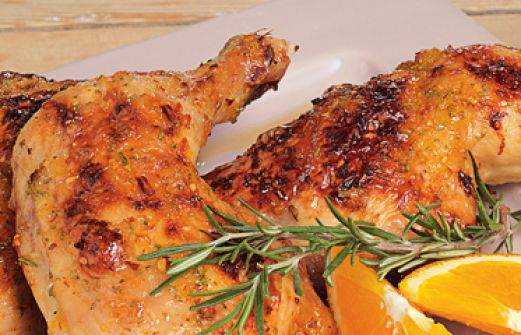 Hähnchenschenkel mit Orange Zutaten 1 Bio-Orange 1/2 Bio-Zitrone 4 Zweige Rosmarin 1 getrocknete Chilischote 2 EL Sherry 2 EL Orangenmarmelade Salz 4 große Hähnchenschenkel (mit Schulterteil, je etwa 300 g) Öl für den Rost guk:similarity-keywords=""> 1 Bio-Orange , [...]