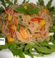 Glasnudelsalat mit Sesam-Beef Zutaten Salz 200 g Glasnudeln 400 g Rindersteak 4 EL Öl Pfeffer aus der Mühle 4 EL helle Sesamsamen 1 Stück Ingwer (30 g) 3 EL Zitronensaft 1/4-1/2 TL Chiliflocken 100 ml Hühnerbrühe 350 g Chinakohl, Pak Choi oder Romanasalat guk:similari [...]