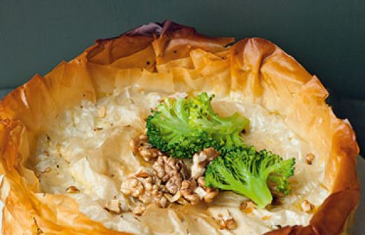 Filopastete mit Ricotta-Brokkoli-Füllung Zutaten 500 g möglichst fester Brokkoli 50 g Walnusskerne 70 g getrocknete Tomaten (in Öl) 250 g Ricotta 250 g Frischkäse 3 Eier (Größe M) 50 g frisch geriebener Parmesan Salz schwarzer Pfeffer ½-1 TL Chiliflocken (z. B. Piment d'Es [...]