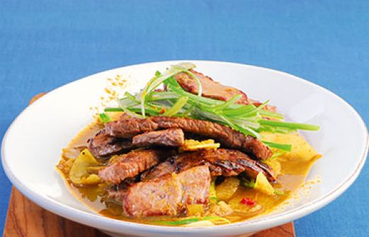 Rindfleisch mit Curry und frischer Kokosnuss Zutaten 1 Stück frischer Ingwer (4 cm) 2 Knoblauchzehen 2 Zwiebeln 2 Chilischoten 1 Bund Frühlingszwiebeln 1 Stück frisches Kokosnussfleisch (ca. 70 g, ersatzweise 4-5 EL getrocknete Kokosraspel) 600 g Rindfleisch (Rinderfilet, Rumps [...]