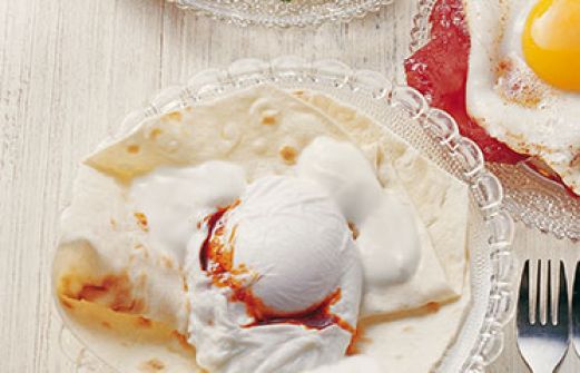 Pochierte Eier in Joghurtsauce Zutaten 500 g löffelfester Joghurt 3 Knoblauchzehen Salz 4 EL Weißweinessig 8 sehr frische Eier 4 EL Sonnenblumenöl 1 TL rosenscharfes Paprikapulver 2-3 Salbeiblätter guk:similarity-keywords=""> 500 g löffelfester Joghurt , 3 Knoblauc [...]