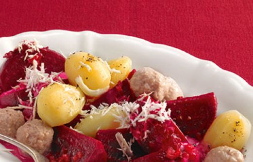 Spreewälder Rote Bete Zutaten 800 g kleine Rote Beten 2 Zwiebeln 2 Knoblauchzehen 40 g fetter Speck 1 TL Butter 350 ml Fleischbrühe (Instant) 2 EL Essig Salz Pfeffer Zucker 800 g ganz kleine festkochende Kartoffeln 2 frische grobe Bratwürste (je ca. 175 g) 100 g saure [...]