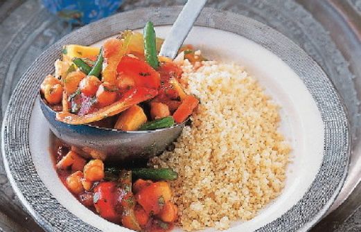 Couscous mit Gemüse Zutaten 350 g Kartoffeln 200 g Möhren 1 kleine Fenchelknolle 2 Stangen Staudensellerie 150 g grüne Bohnen 2 Zwiebeln 2 Knoblauchzehen 300 g Tomaten 4 EL Olivenöl Salz Pfeffer 1 l Tomatensaft 1 Dose Kichererbsen (265 g Abtropfgewicht) je ca. 1/2 [...]