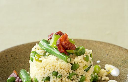 Grüner Gemüse-Couscous Zutaten 100 g Instant-Couscous Salz 75 g Bacon 200 g grüne Bohnen 100 g TK-Erbsen 150 g Staudensellerie 2 EL Olivenöl 1 Zweig Rosmarin Pfeffer ⅛ l Gemüsebrühe 200 g Sahnejoghurt 1-2 EL Zitronensaft guk:similarity-keywords=""> 100 g Instant [...]