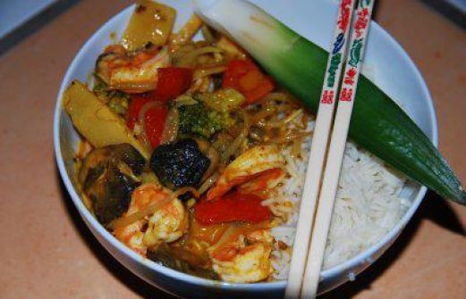 zutaten_2sp"> Zutaten für Personen Rezept mit Bild: Gaeng Ped Gung - Rotes Thai-Curry mit Garnelen Bild einstellen 20 Riesengarnelen 100 g Mungobohnensprossen frisch 100 g Brokkoli 2 Lauchzwiebeln frisc [...]