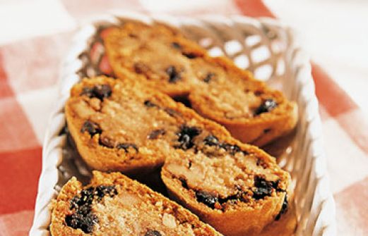 Teigrolle mit Walnüssen und Rosinen Zutaten 300 g Walnusskerne 300 g Rosinen 150 ml Zitronen- oder Orangenlikör 600 g Mehl 100 g Zucker 1 Päckchen Vanillezucker 1 Päckchen Backpulver 1 TL gemahlener Zimt 1/2 TL gemahlene Nelken 100 ml Olivenöl + Öl zum Bepinseln 1/8 l frisc [...]