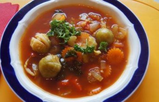 Zutaten für Personen Rezept mit Bild: Gemüsesuppe Bild einstellen Ergibt ca. 4 Liter Gemüsesuppe ! 500 g Möhren 500 g Rosenkohl 3 Stangensellerie ca. 250 g 3 Zwiebeln ca. 400 g 2 rote Paprik [...]