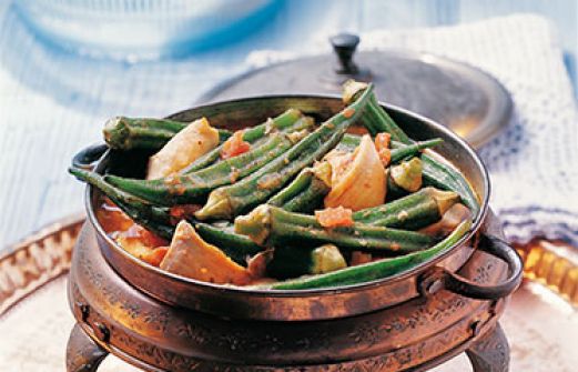 Huhn mit Okraschoten Zutaten 500 g möglichst kleine Okraschoten, 3-5 cm lang 2 EL Essig 500 g ausgelöstes Hähnchenfleisch von der Brust und den Keulen 3 Zwiebeln 2 Tomaten 40 g Butter Salz Pfeffer, frisch gemahlen ½ TL mildes Paprikapulver ½ l Hühner- oder Gemüsebrühe guk [...]
