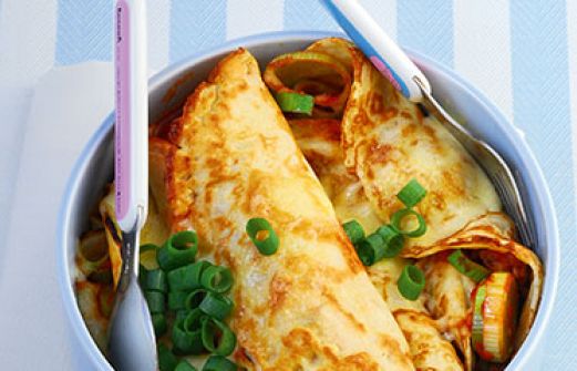 Pfannkuchen-Cannelloni Zutaten 1/2 Stange Lauch (ca. 100 g) 3 Frühlingszwiebeln (ca. 60 g) 1 Knoblauchzehe 1 1/2 EL Öl 250 g gemischtes Hackfleisch 300 ml passierte Tomaten (aus der Flasche oder Dose) 1 TL gekörnte Gemüsebrühe Salz Pfeffer getrockneter Oregano und Thymian [...]