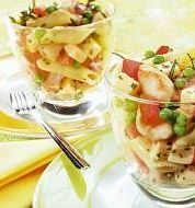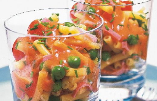 Pastasalat mit Schinken und Erbsen Zutaten 300 g Nudeln (z. B. Maccheroni) Salz 150 g TK-Erbsen 200 g gekochter Schinken 200 g Leerdamer 200 g Tomaten 1 Bund Schnittlauch 250 g leichte Salatcreme 250 g fettarmer Joghurt 2 EL Ketchup Pfeffer guk:similarity-keywords=""> [...]