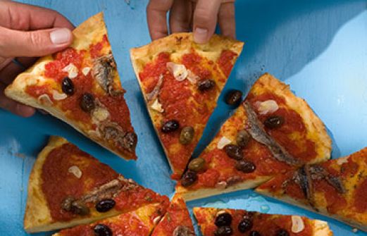 Tomatenfladen mit Sardellen und Oliven Zutaten 300 g Mehl 20 g frische Hefe 6 EL Olivenöl Salz 800 g Tomaten 1 Zwiebel 2 Lorbeerblätter 1 TL Zucker 30 g Sardellenfilets in Öl oder 50 g Ölsardinen 2 EL Taggiasca-Oliven oder andere kleine schwarze Oliven 4 Knoblauchzehen [...]