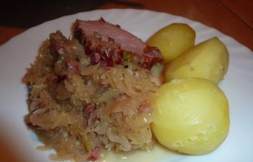 Zutaten für Personen Rezept mit Bild: FL/Schwein: Sauerkraut mit Kasseler Bild einstellen 1 kg Sauerkraut Konserve 750 g Kasseler Lachsbraten 125 g Räucherspeck durchwachsen 1 kleine Zwiebel 5 Wach [...]