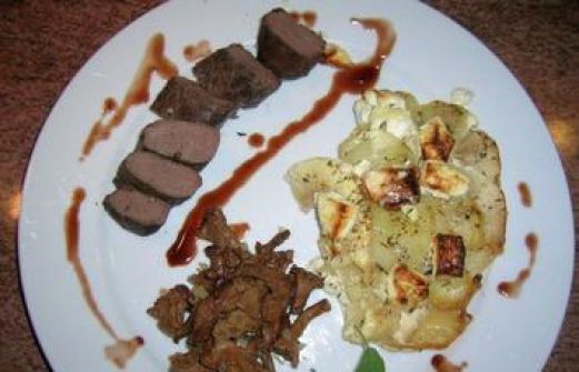 Zutaten für Personen Rezept mit Bild: Hasenfilet, an Apfel-Kartoffel-Schafskäse-Gratin, neben Pfifferlingen Bild einstellen ***FÜR DIE HASENFILETS*** 3 Stück Hasenfilet Thymian Rosmarin Salz, [...]