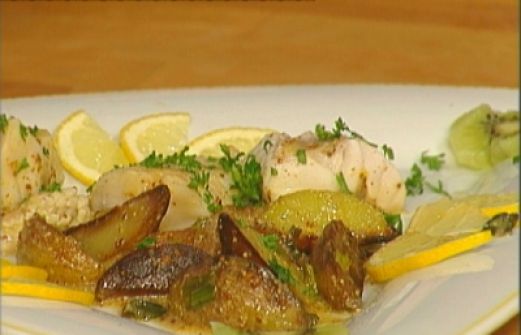 Menge Zutat 750 g kleine Kartoffeln 150 g Joghurt Salz, weißer Pfeffer 2 Bund Lauchzwiebeln 600 g Rotbarschfilet Saft einer hal [...]