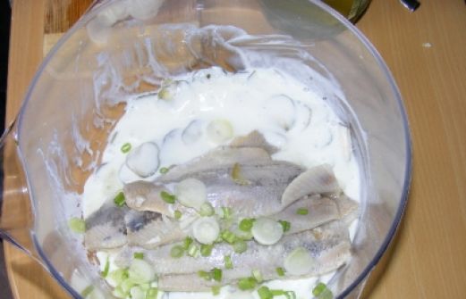 Menge Zutat 1 Pk Matjesfilets 150 g fettarmer Joghurt 150 g saure Sahne 2 St Frühlingszwiebeln 2 St Gewürzgurken 1 St Apfel [...]
