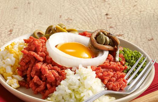 Tatar mit pikanten Zutaten Zutaten 400 g mageres Rindfleisch ohne Sehnen Salz 1 TL edelsüßes oder rosenscharfes Paprikapulver 2 hart gekochte Eier 4 Sardellenfilets (in Salzlake) 2 TL Kapern 10 grüne Oliven ohne Stein 2 große Zwiebeln 1 Bund Schnittlauch 4 ganz frische Eigelb [...]