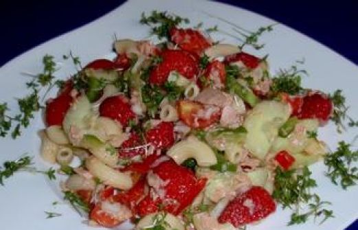 Zutaten für Personen Rezept mit Bild: Fruchtiger Thunfisch-Nudelsalat Bild einstellen 100 g Hörnchennudeln roh gewogen 150 g Thunfisch ohne Öl 180 g Cocktailstrauchtomaten 125 g Salatgurke 125 [...]