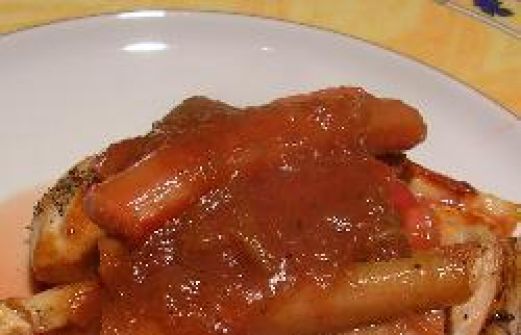 Portionen : 4 12 Stangen Rhabarber 2 Hühnerbrüste ohne Haut und Knochen Salz Pfeffer Pflanzenöl 3 EL brauner Zucker 2 EL Butter Schuss Cassis (Johannisbeerlikör) Zub.: 12 Min. | Kochzeit: 12 Min. 1. Rhabarber putzen und in 10 cm lange Stücke sch [...]