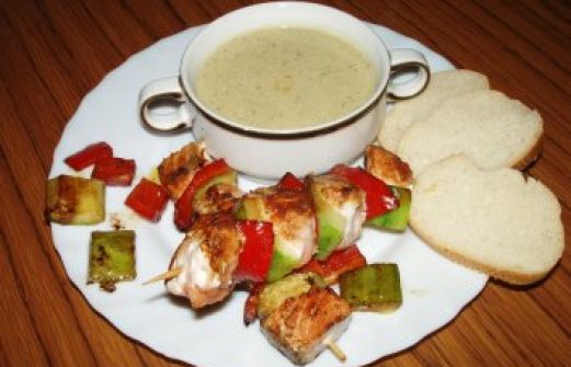 Zutaten für Personen Rezept mit Bild: Lachs Spieß mit Gurken - Sahne Suppe Bild einstellen 250 Gramm Lachs ohne Haut und Gräten 1 Salatgurke 1 Zwiebel gehackt 2 EL Butter 1 Paprika rot 1 EL Basilikum [...]