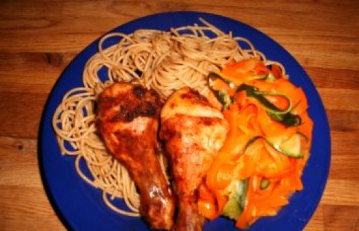 zutaten_2sp"> Zutaten für Personen Bild einstellen 4 Hähnchenschenkel 300 gr. Vollkornspaghetti 6 Möhren 1 kleine Zucchini Hähnchengewürz 2 Esslöffel Sonnenblumenöl Süßstoff Rezept Zubereitung Hähnchen [...]