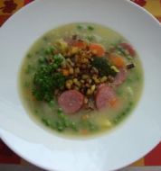 Menge Zutat 2 Kartoffeln (mehlig kochend, ca. 100 g) 2 EL Erbsen (TK) 50 ml Sahne (oder Milch) 200 ml Gemüsebrühe (instant) 1 Schb Toast [...]