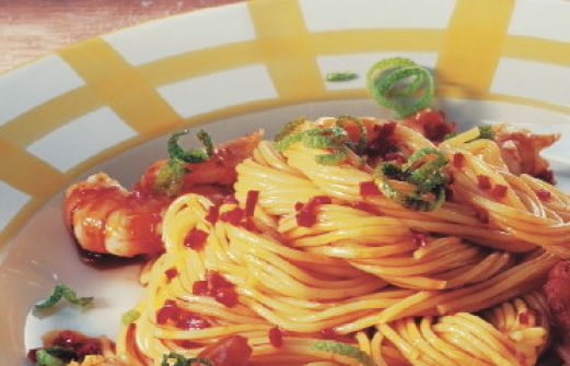Linguine mit Limette und Garnelen Zutaten 500 g Garnelen (geschält und gekocht) 400 g Spaghetti oder Linguine (schmale Bandnudeln) Salz 1 frische rote Chilischote 20 g Krebsbutter (beim Fischhändler erhältlich) 2 Esslöffel Olivenöl dünn abgeriebene Schale von 2 Limetten Saft von [...]