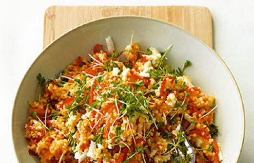Energie-Couscous Zutaten 100 ml Gemüsebrühe 4 EL Instant-Couscousgrieß (ca. 55 g) 1 rote Paprikaschote 1 Kästchen Kresse 75 g Feta-Käse 3-5 EL Zitronensaft 1 EL Rapsöl Salz Pfeffer guk:similarity-keywords=""> 100 ml Gemüsebrühe , 4 EL Instant-Couscousgrieß (ca. [...]