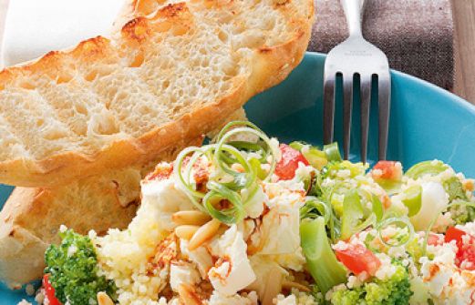Couscoussalat Zutaten 125 g Couscous 250 g Brokkoli Salz 2 Tomaten 2 Frühlingszwiebeln 4 Zweige Basilikum 1 EL Pinienkerne 100 g Schafskäse (Feta) 3 EL Zitronensaft 1 TL edelsüßes Paprikapulver je 1/4 TL gemahlener Kreuzkümmel und Koriander schwarzer Pfeffer 4 EL Oliv [...]