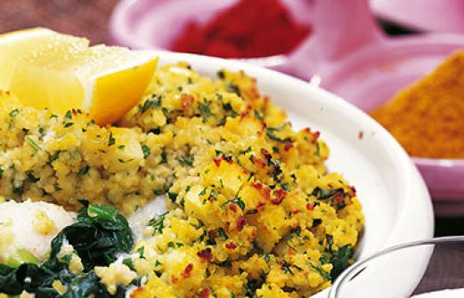 Fisch-Spinat-Gratin mit Couscoushaube Zutaten 100 g Instant-Couscous 800 g Spinat Salz 1 Bund Frühlingszwiebeln Pfeffer aus der Mühle 600 g Fischfilet (z. B. Rotbarsch, Scholle, Forelle oder Zander) 1 EL Zitronensaft je 1/2 Bund Koriander und Petersilie 2 Knoblauchzehen 1 [...]