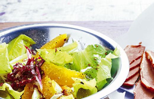 Wintersalat mit Orangen Zutaten 2 große Orangen 2 EL Weißweinessig 1 TL körniger Senf 1 TL Orangenmarmelade 4 EL Olivenöl Salz Pfeffer ½ Endiviensalat (etwa 250 g) 2 Stauden Chicorée 1 kleiner Radicchio guk:similarity-keywords=""> 2 große Orangen , 2 EL Weißwe [...]