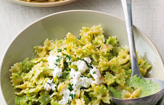 Farfalle mit Brokkolisauce Zutaten Salz 200 g Mini-Farfalle 1 Schalotte 1 Knoblauchzehe 1 EL Butter 300 g TK-Brokkoli 100 ml Gemüsebrühe 1/2 Bund Petersilie 100 g Crème fraîche Pfeffer frisch geriebene Muskatnuss 50 g Ricotta guk:similarity-keywords=""> Salz , [...]