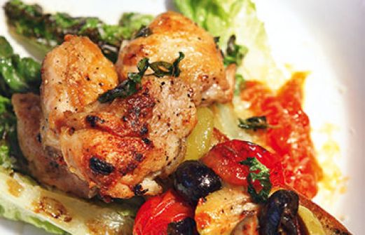 Hähnchenkeule mit Oliven-Ciabatta Zutaten 2 Hähnchenoberschenkel Salz Pfeffer Zucker 2 EL Pflanzenöl je 1 Zweig Thymian und Rosmarin 1 Knoblauchzehe 2 kleine Romana-Salatherzen 1 EL Butter 10 Kirschtomaten (200 g) je 10 eingelegte grüne und schwarze Oliven ohne Kerne 5 [...]