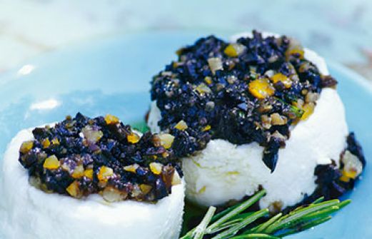 Ziegenkäse mit Olivenhaube Zutaten 100 g schwarze Oliven (ohne Stein) 2 TL Orangeatwürfel 1 Knoblauchzehe 1 kleiner Zweig Rosmarin 3-4 EL Olivenöl 1 EL Zitronensaft Salz Pfeffer 2 runde Ziegenfrischkäse (je ca. 125 g) guk:similarity-keywords=""> 100 g schwarze Oliven [...]