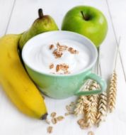 Müsli mit frischen Früchten Zutaten 5 EL gemischte ungesüßte Vollkornflocken 1 EL Sonnenblumenkerne 3 EL Orangensaft (ersatzweise Apfelsaft) 400 g gemischte Früchte der Saison (z.B. Nektarine, Pfirsich, Pflaume, Brombeeren) 2 TL Zitronensaft 200 g körniger Frischkäse einige Blätt [...]