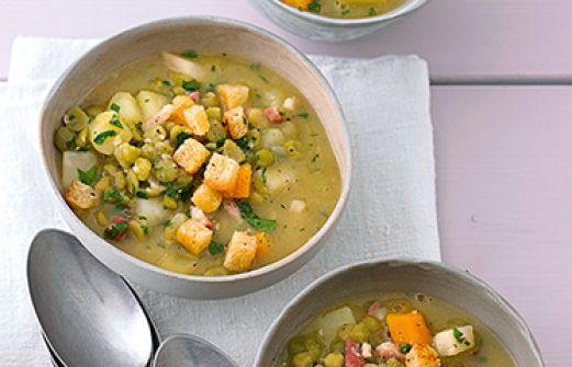 Erbseneintopf Zutaten 1 große Zwiebel 150 g durchwachsener Bauchspeck 500 g getrocknete grüne Schälerbsen 1 1/2 l kräftige Gemüse- oder Fleischbrühe 1 Lorbeerblatt 1 TL getrockneter Majoran 2 große mehligkochende Kartoffeln 2 Möhren 1 Stück Sellerie (ca. 150 g) 1 Bund Peter [...]