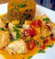 Scharfes Orangen-Hähnchen Zutaten 1 Poularde (ca. 1,8 kg, zerteilt) 2 rote Zwiebeln 3 Knoblauchzehen 3 Orangen Salz Pfeffer je 1 EL Butter und Olivenöl 2 TL zerstoßene Korianderkörner 1 EL schwarzer Sesam 2 EL Rosinen 2 EL Honig 1 Zimtstange 2 rote Chilischoten 300 [...]
