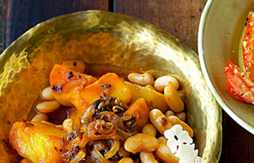 Bohnen-Kartoffel-Curry Zutaten 300 g Zwiebeln 3 EL neutrales Öl (z. B. Rapsöl) 1 EL Panch Phoron 600 g Kartoffeln 300 ml Gemüsebrühe 2 EL indische Currypaste (medium oder hot) 800 g weiße Bohnen (aus der Dose) 100 g Frischkäse (16 % Fett i. Tr.) Salz guk:similarity-keywords [...]