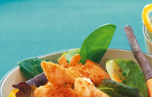 Bunter Salat mit Kokos-Huhn-Streifen Zutaten 200 g Blattsalat (z. B. Kopfsalat, Feldsalat, Portulak oder zarter Blattspinat mit anderen Salaten gemischt) 200 g Kirschtomaten 1 kleine Salatgurke 1 dicke Möhre 1 gelbe oder rote Paprikaschote 1 Stange Staudensellerie 1 Bund Schnit [...]