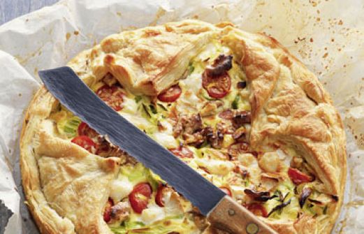 Lauchkuchen Zutaten 300 g TK-Blätterteig (4 Platten à 75 g) 600 g Lauch 2 EL Öl Salz Pfeffer 3 Eier (M) 150 g Schmand 150 g Kirschtomaten 100 g Ziegenkäserolle 30 g Walnusskerne guk:similarity-keywords=""> 300 g TK-Blätterteig (4 Platten à 75 g) , 600 g Lauch , [...]